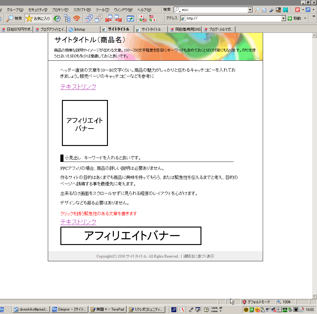 ・サイト内には広告以外に出口が無い(通販法表記を除く)